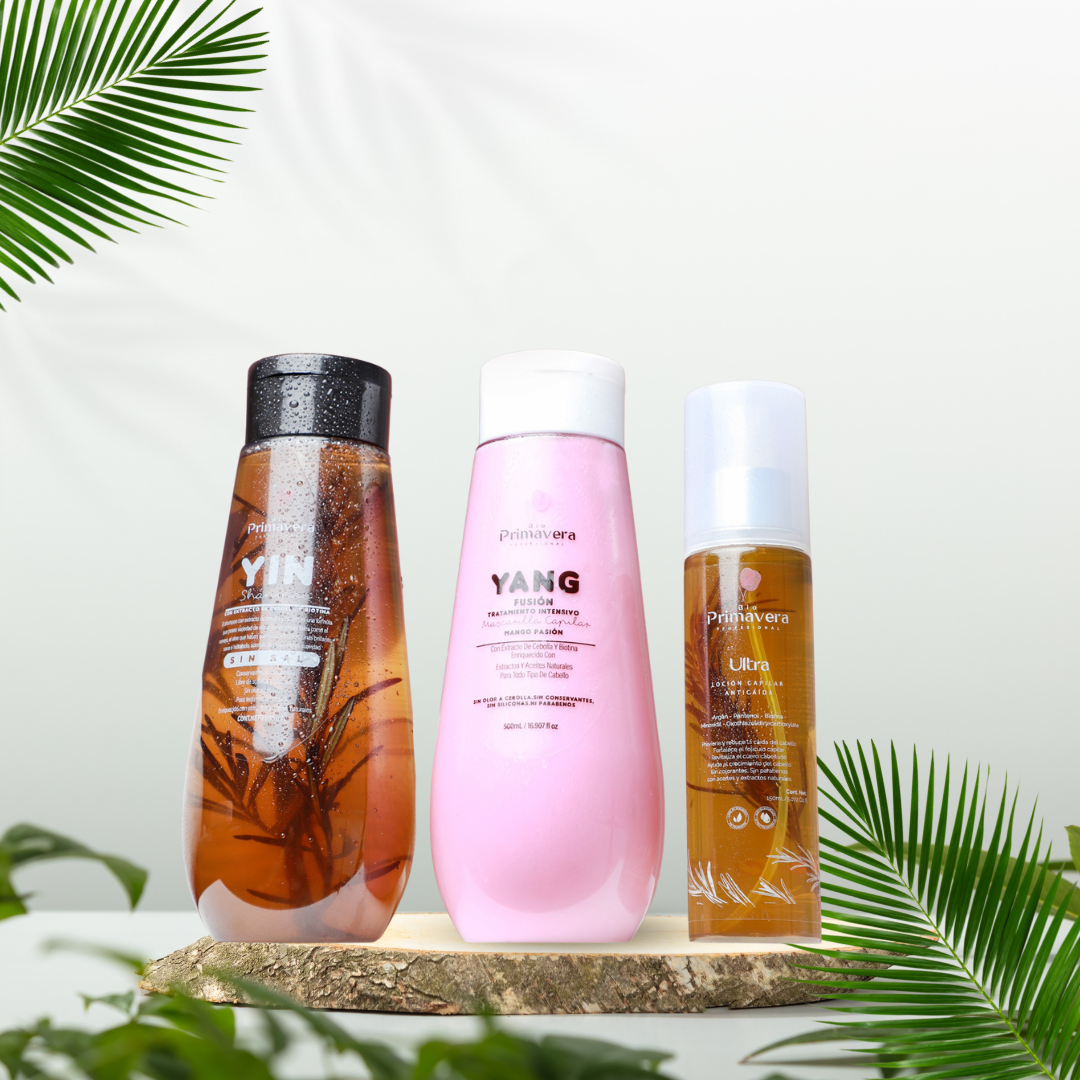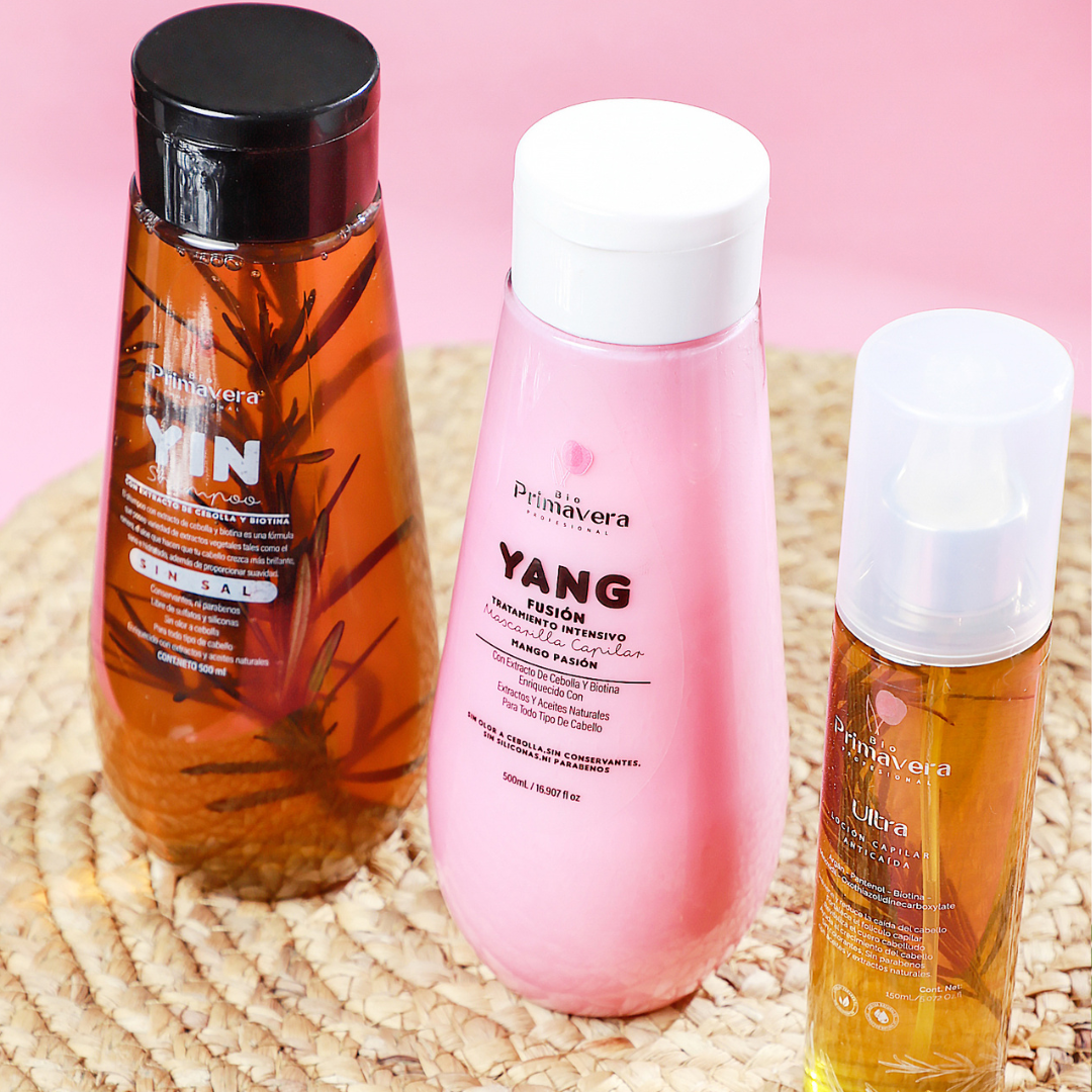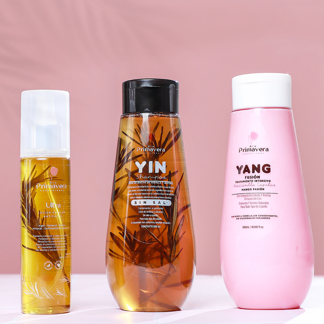 Descubre el poder de la naturaleza para un cabello espectacular con el KIT TRÍO CRECIMIENTO YIN & YANG + TÓNICO ULTRA CRECIMIENTO de Bio Primavera.